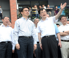 现任中华人民共和国副主席韩正在现任湖北省委副书记诸葛宇杰(原杨浦区区委书记)陪同下莅临城市概念软件·信息服务园。